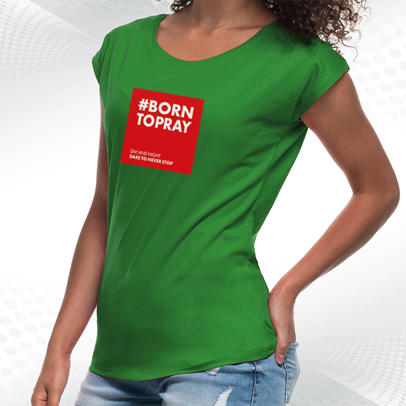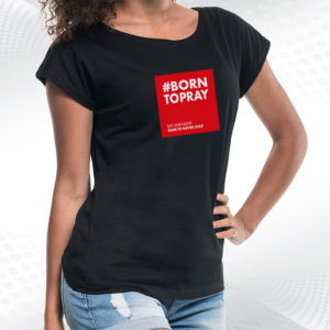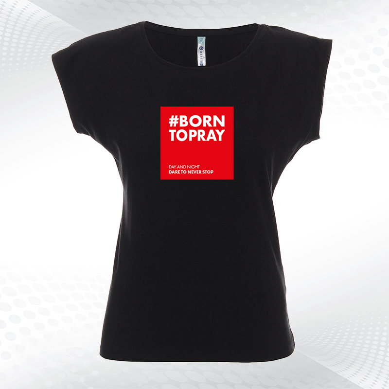 czarna damska koszulka z dekoltem born to prayBorn To Pray