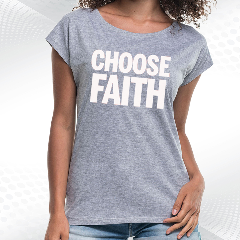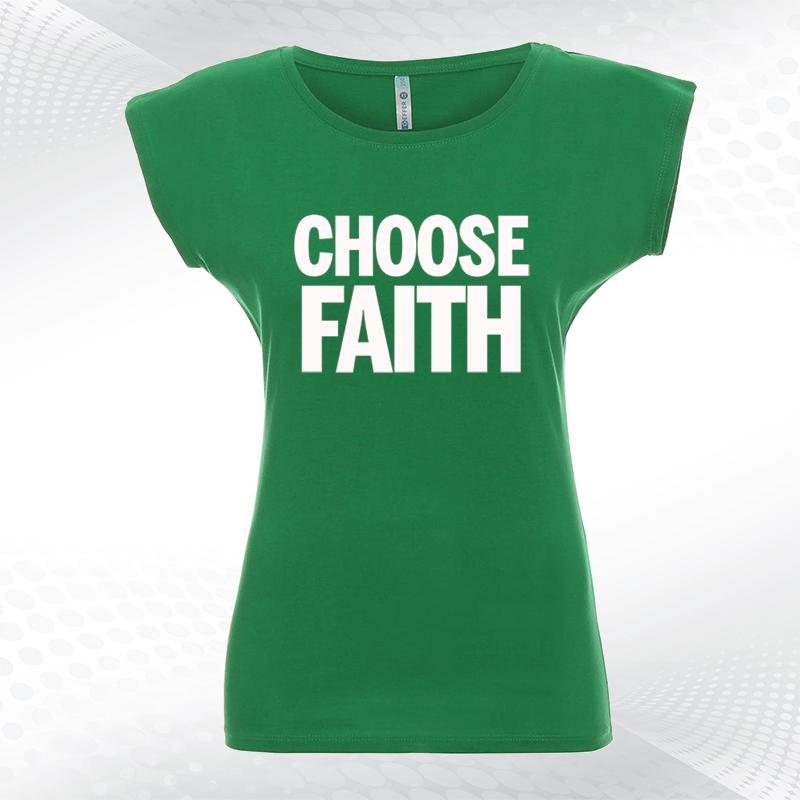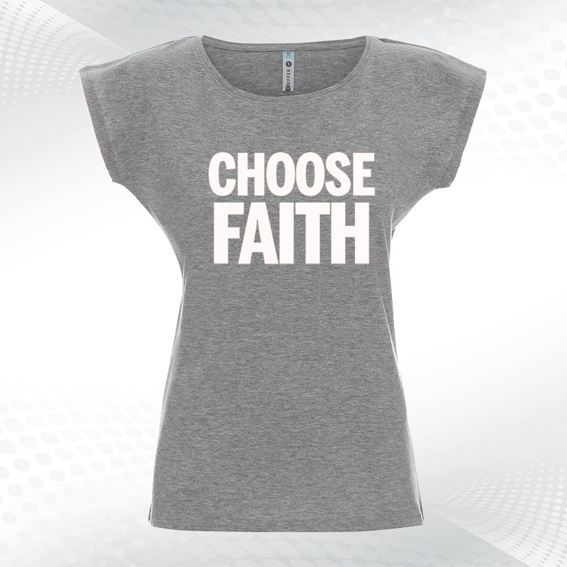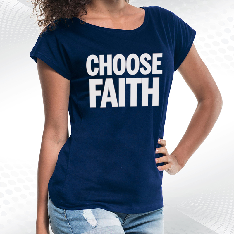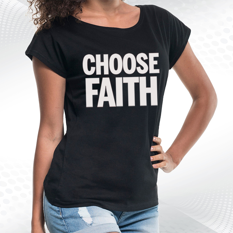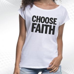 biała damska koszulka z dekoltem choose faithChoose Faith