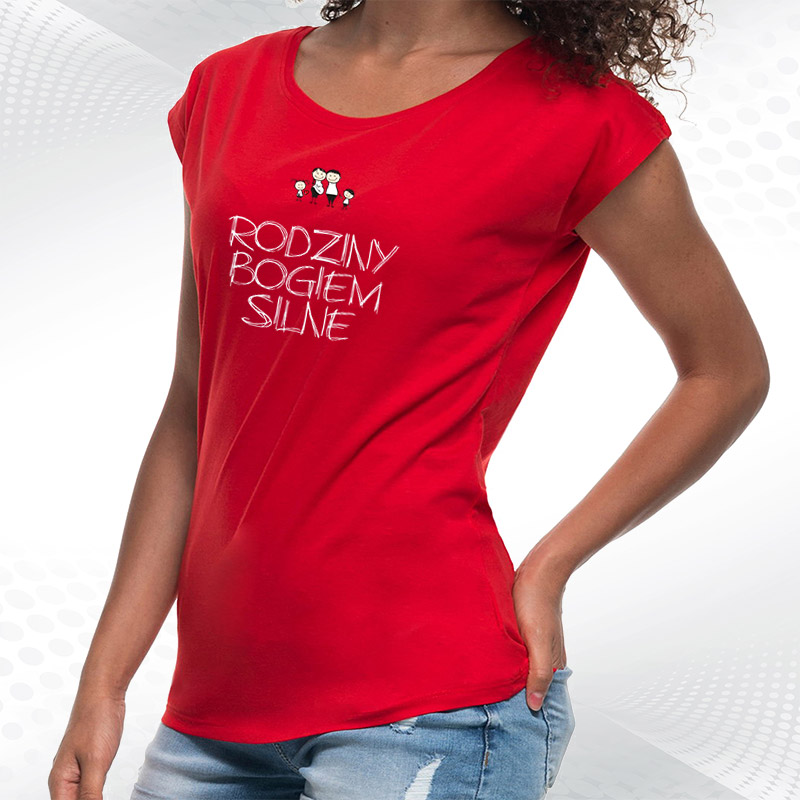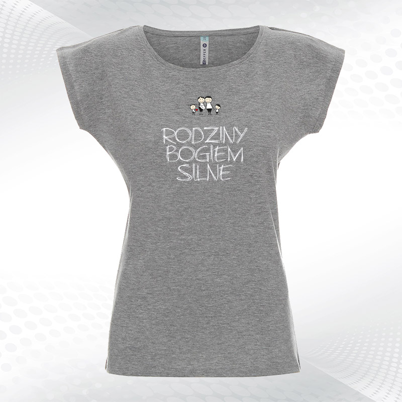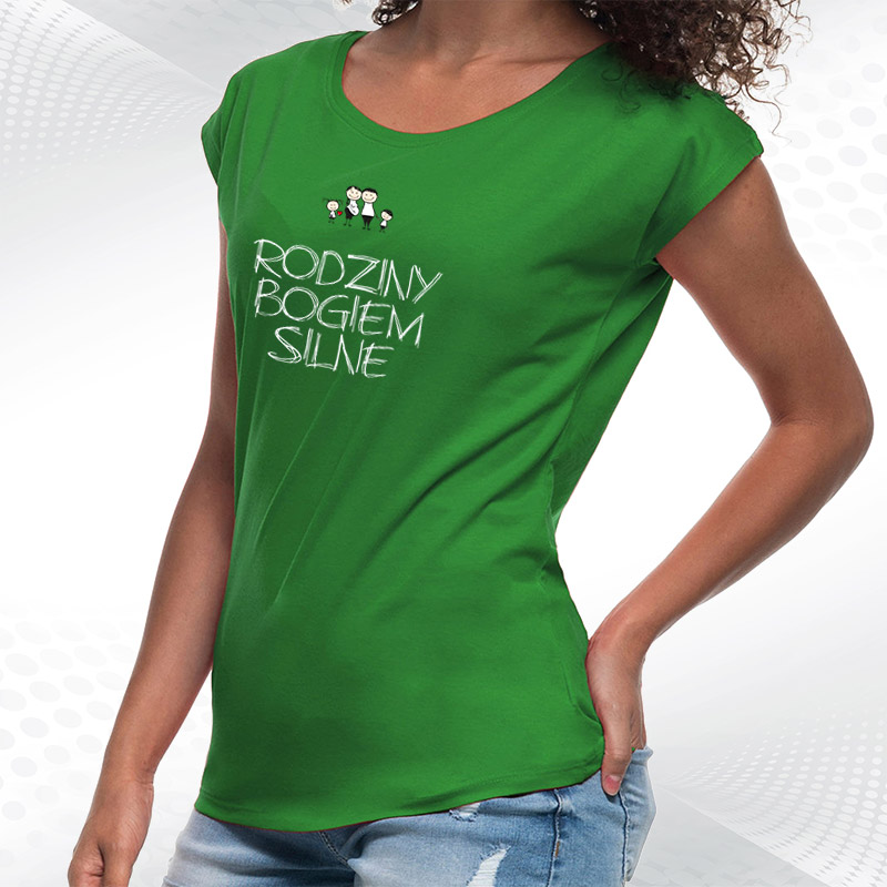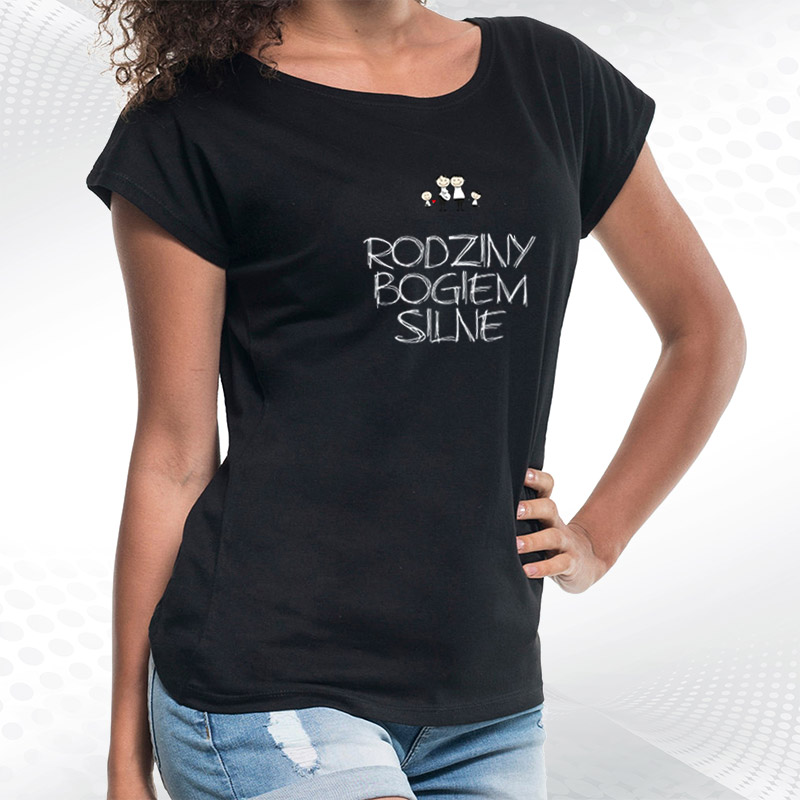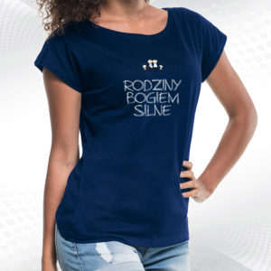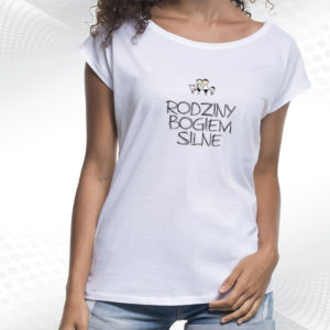 damska biała koszulka z dekoltem rodziny bogiem silneRodziny Bogiem Silne