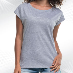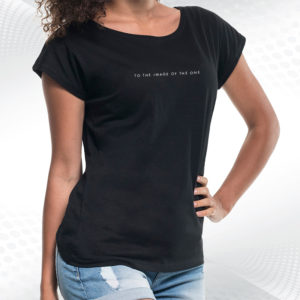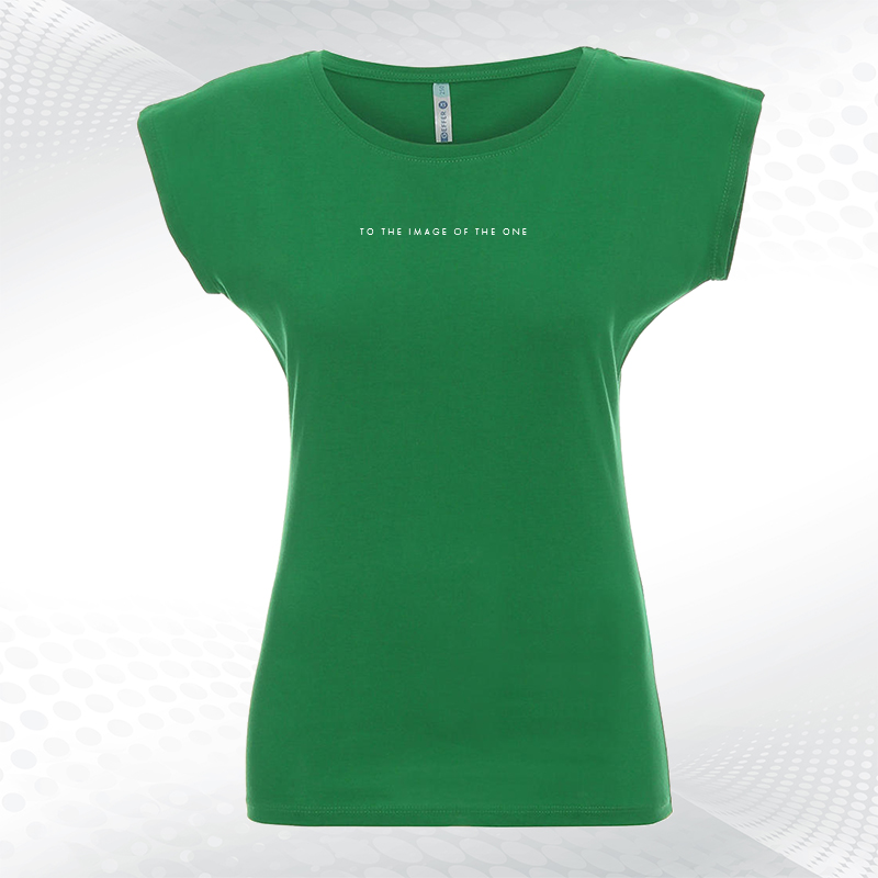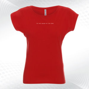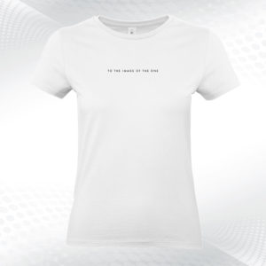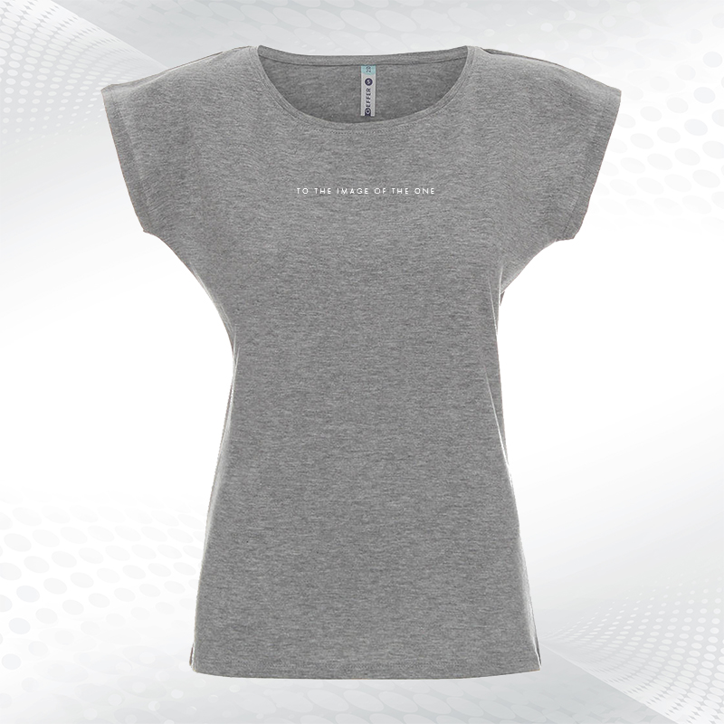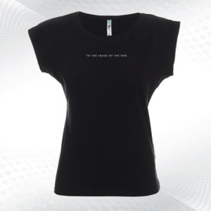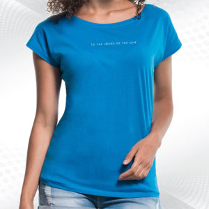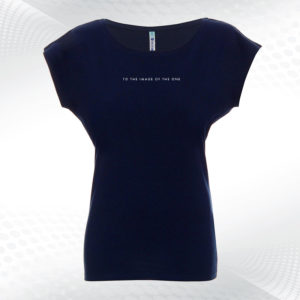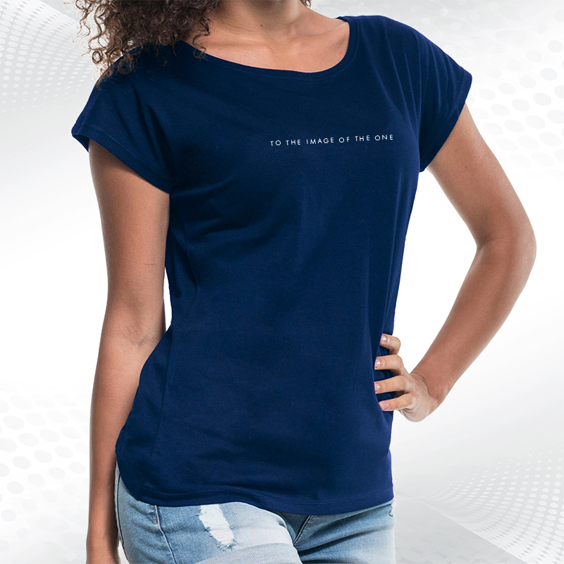 damska niebieska koszulka z dekoltem z chrześcijańskim napisemTo The Image Of The One